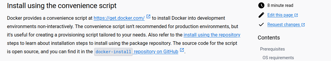简单起见,我们使用Docker官网上提供的脚本方法来安装: