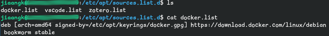 Docker社区版本的软件包docker-ce以及其他附带软件已经在系统里安装。同时在/etc/apt/sources.list.d/目录内,观察到已经有docker.list文件,说明已经可以用apt包管理器来管理docker的更新。